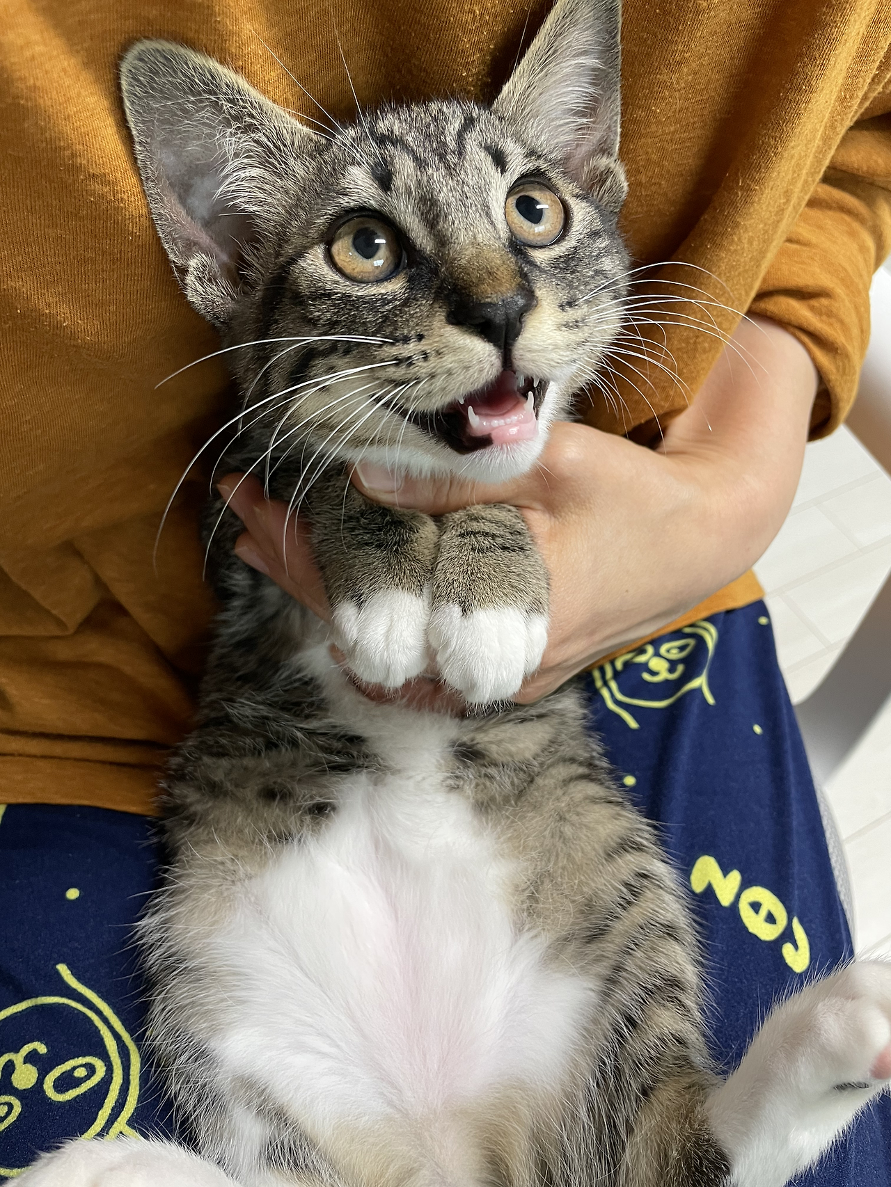 “아옹~ 아옹~ 아옹” 작은 소리로 계속 대답하는 미덕이. 그 모습이 귀여워 한 번 더 폭~감싸 안으면 ‘이건 아니지~’하며 슬며시 빠져나가버린다.