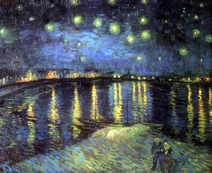 태양이 지고 나면 노란 햇빛이나 활짝 핀 해바라기도 더 이상 눈에 보이지 않는다. 하지만 곧 사물의 실루엣이 눈에 들어오기 시작하고, 하늘은 깊은 푸른 색으로 물들며, 노란 별빛과 달빛이 떠오른다. 낮의 풍경만을 그렸던 대부분의 화가들과 달리, 고흐는 이런 밤하늘을 꿈꾸며 밤의 풍경 또한 자주 그렸다.