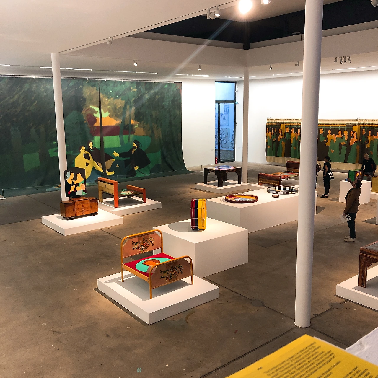 미술관 가장 안쪽에는 순수예술과 디자인, 하이컬처와 로우 컬처를 하나로 묶는 작업이 전시되어 있습니다. <모나리자>와 <피리 부는 소년> 등의 명화가 가구의 형태로 재현되어 있지요. 이처럼 곤잘레스는 도상학적 실험을 시도함으로써 서양 회화와 남미 전통의 상관관계를 공고히 하였습니다. 이곳에서의 회고전은 곤잘레스의 작업을 폭넓게 선보이는 독일 최초의 전시입니다.