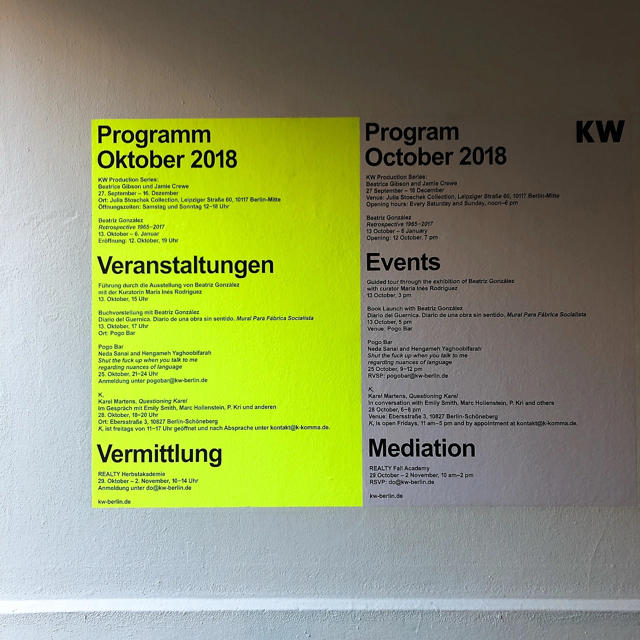 베를린 미테(Mitte) 지구의 한 골목에 숨어 있는 KW현대미술관은 다양한 형태의 문화를 생산합니다. 댄 그레이엄(Dan Graham, 1942-)이 직접 디자인한 미술관 안뜰의 카페를 비롯하여, 시민들을 위한 이벤트 공간과 큐레이토리얼 사무실, 전시실 등이 한 곳에 모여 있지요. 그래서인지 건물 중정에서는 이웃집을 드나들 듯 편안한 차림으로 나와 커피를 즐기고 전시를 관람하는 로컬들을 만나볼 수 있습니다.