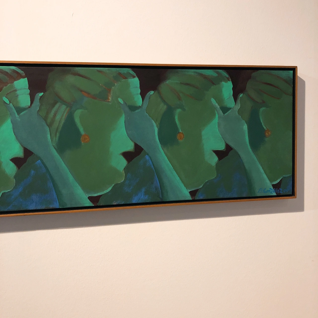 곤잘레스는 다른 작가의 작업에서 찾아보기 힘든 특유의 푸른빛으로 슬픔을 담아냅니다. 눈을 가리고 우는 얼굴들 또한 작가가 즐겨 그린 인물의 형태인데요, 이는 작가가 1940년대와 1950년대의 콜롬비아 정치 격동기를 거치며 대중 매체에 등장하는 사회 속 사건에 대해 큰 관심을 지니게 되었기 때문입니다. 신문을 스크랩하고, 특정 사건에 대한 인물사진을 회화로 옮긴 연작은 일상과 정치를 모두 넘나드는 작업이었지요.