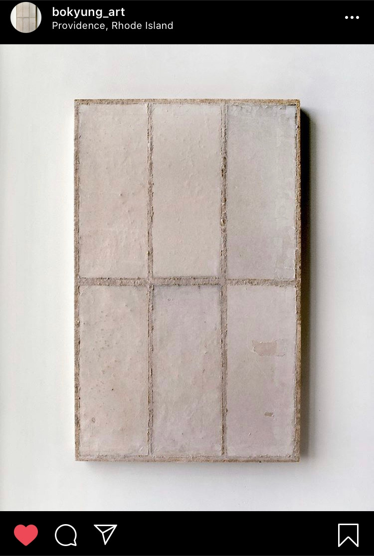그렇게 추천받은 이미지를 둘러보다가 인상 깊었던 작업이 하나 있었다. 하종현 선생님의 <Conjunction 시리즈>와 비슷하게 캔버스 위 그림이 아닌 캔버스 위에 올려놓아진 물질과 회화 공간을 보여주는 작업이었다. 단지 4.7인치 디스플레이 속 느껴진 작업의 물성이 상당히 인상적이었다.