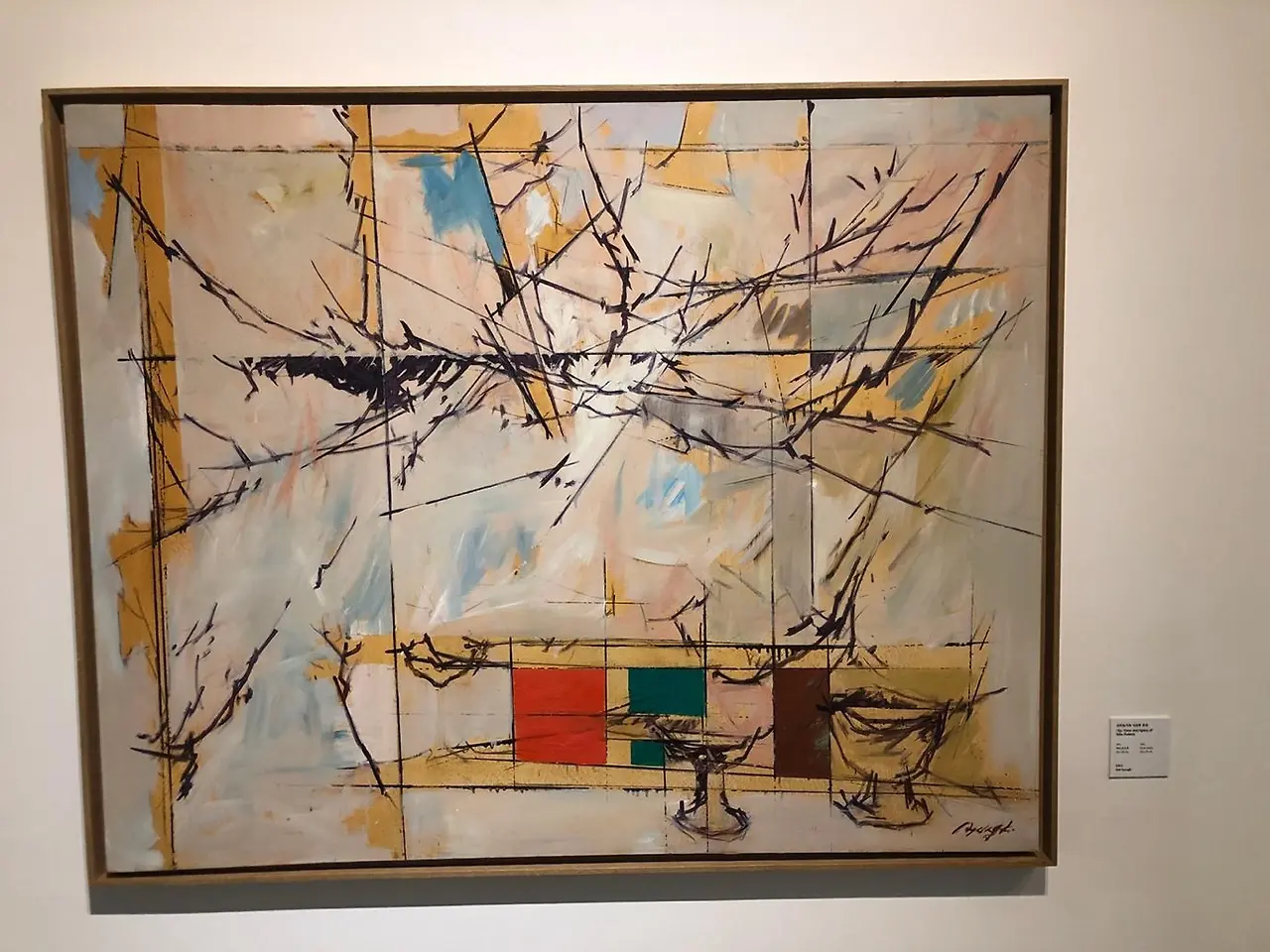 서양식 추상 표현에 한국의 선을 그어 동서양의 조화를 꾀하고 있는 작품입니다. 대한민국 내각제 시절 ‘장면 총리’의 친동생이 그린 작품이라고 하네요.