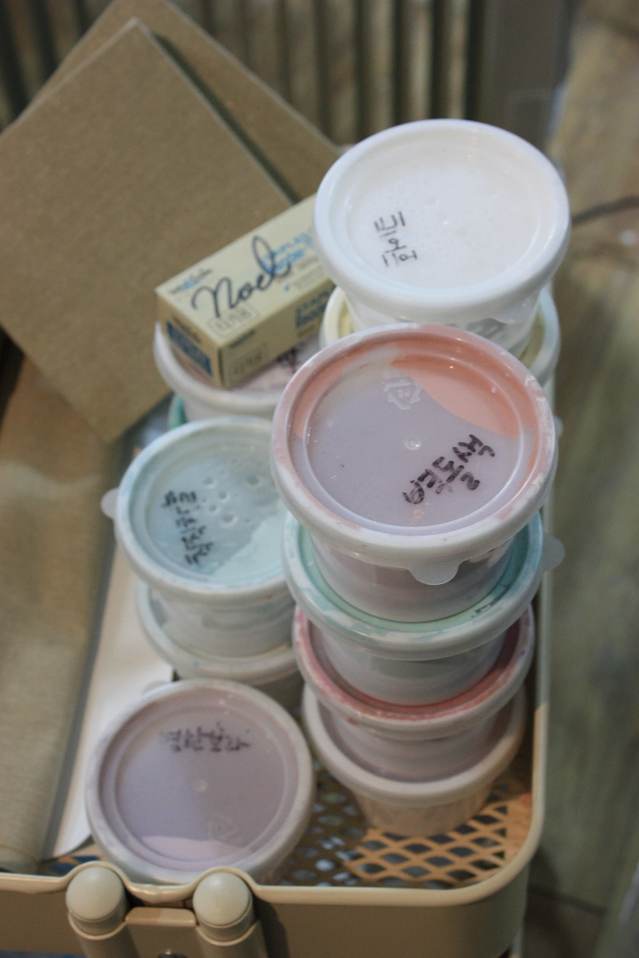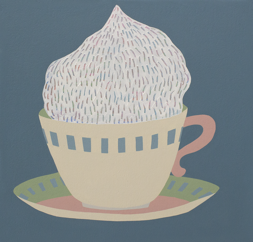 평면으로 그린 그림 위에, 그녀는 주로 채도가 낮은 파스텔톤의 색을 입힌다. 공책에서 볼 수 있는 ‘소프트 존’ 같은 색.