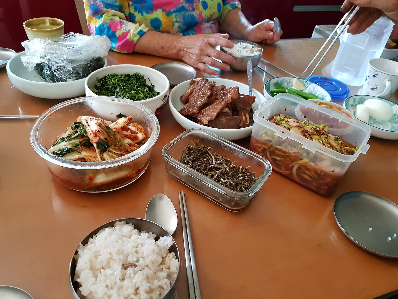 오전에 밭에 나가 열심히 일을 하다보면 어느새 점심 시간이 다가왔다. 점심을 먹기위해서는 다시 차를 타고 20-30분을 내려와야 했다. 일하러 가기도 불편하고 날씨도 더워 힘들었지만, 나는 일하는 내내 밥먹을 생각에 절로 기분이 좋았다. 손주 같은 나를 위해 매번 새로운 반찬을 해주시는 '어머님의 밥상' 덕분이었다.