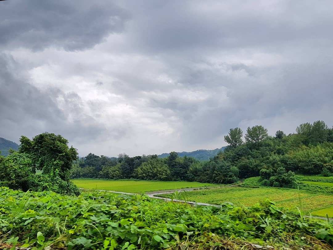 정말 영화에서나 나올법한 시골이었다. 여름이라 그런지 주변에 풀들이 무성해 초록색의 이미지가 강하게 느껴졌다. 나는 비를 맞으며 아버님이 알려주신 집 주소로 향했다. 잠시후 저멀리서 아버님이 모습을 드러내셨다.