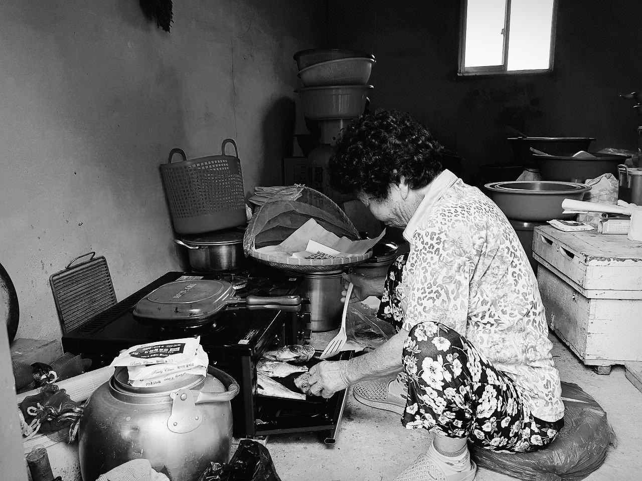 생선을 굽고 계신 우리 할머니