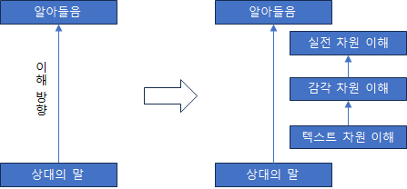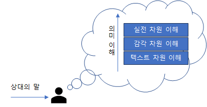 상위 차원의 이해가 되기 위해서는 하위 차원의 이해에서 문제가 없어야 한다. 결국 상대의 말을 정상적으로 이해한다는 것은 다음 그림처럼 모든 단계의 이해가 정상적으로 진행되는 것을 말한다.