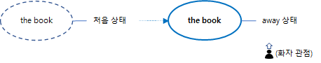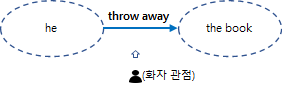 첫 번째 문장은 주체인 I가 throw away라는 동작을 통해서 대상 the book에 영향을 미친다는 의미이다. 그림으로 그려 보면 다음과 같다.
