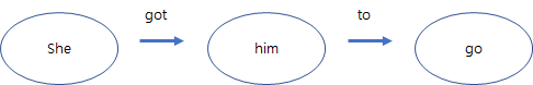 We는 got을 통해서 him에게 영향을 미치고 그 결과로 him은 go 하게 되었다.