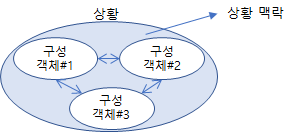 '맥락'이라는 것은 여러 가지가 있다. '상황 맥락'도 있고 '문장 맥락'도 있고 '이야기 맥락' 등 어떤 관점에서 보는지에 따라서 맥락도 달라지게 된다. 만약 객체 차원에서 객체들과 그들의 관계 관점에서 보고 있다면 그런 맥락은 '객체 맥락'이라고 부를 수도 있을 것이다. 즉, '문장 맥락'이라는 것은 객체 지향 관점에서 보면 '객체 맥락'이라고 할 수 있다.