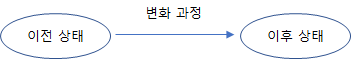 '상태'라는 개념도 있지만 '상태의 변화'라는 것도 있다. '상태 변화'라는 것은 '이전 상태'가 있고, '변화 과정'이 있고 그리고 '변화 후의 결과 상태'가 있다. 이것을 그림으로 나타내면 다음과 같다.