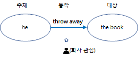 주체인 I가 throw away라는 동작을 통해서 대상 the book에 영향을 미친다