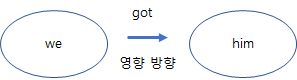 주체인 We가 him이라는 대상 객체에 영향을 미쳐서 그 결과가 him이 go 하게 되었다.