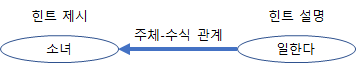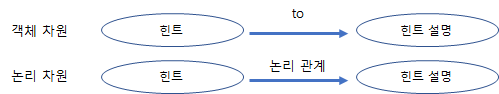 '힌트 우선 구조'에 의한 '객체 차원 의미와 '힌트'와 '힌트 설명' 부분의 논리 관계를 살펴보면 다음과 같다.
