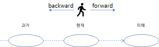 앞의 그림에서 또 하나 주목할 것은 화자의 위치이다. 화자(speaker)는 '현재 위치'에 있다. 즉, 완료형을 말하고 있는 화자의 머릿속 방향은 '현재 위치에서 과거'를 보고 있다.