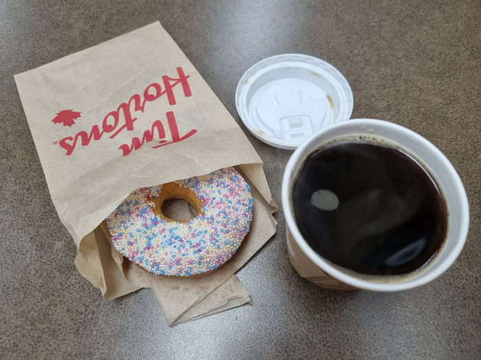 팀홀튼의 아메리카노는 가성비가 매우 좋다. 스몰과 미디움 사이즈를 1달러대에 구매할 수 있다. 밍밍한 아메리카노도 최소한 2달러대에 구매가능하고, 제대로 된 아메리카노는 4달러대에 구매할 수 있다는 걸 고려하면 가격이 정말 저렴하다. 도넛은 기름기 없이 촉촉하고 부드럽다. 나는 기름에 푹 담갔다 나온것 같은 도넛보다 이렇게 구운듯한 도넛을 더 좋아한다.