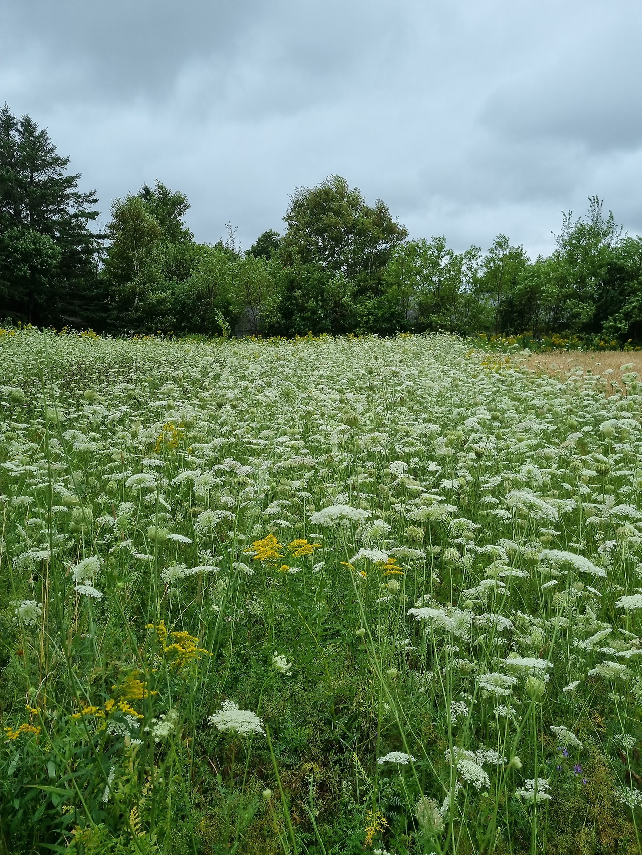 오늘 숙소로 새로 들인 것은 긴팔 티셔츠뿐만이 아니다. 옷가게에서 곧바로 돌아오기 아쉬웠던 우리는 몽고메리 문학공원으로 갔다. 그곳에서 오솔길을 따라 조금 걸으면 맥닐의 집터가 나타난다. 몽고메리 작가가 앤 소설의 초고를 썼던 외할아버지 맥닐의 집이다. 지금은 집의 토대만 남아서 자리를 지키고 있다. 바로 옆 건물은 서점으로 운영되고 있는데 문이 열리더니 한 여자가 걸어나왔다. 문을 닫을 시간이란다. 아쉬운 마음을 뒤로 하고 왔던 길을 천천히 걸어서 되돌아 가기 시작했다. 비는 아주 얇게 간간히 떨어지고 있었다. 몽고메리 작가가 매일 걸었을 그 길을 아이들과 함께 걸었다. 오솔길에 도착하기 전까지는 넓은 들판이다. 하늘엔 아직 회색 먹구름이 머물고 있었지만, 들판에는 초록 줄기에 소담스럽게 매달린 새하얀 꽃들이 가득했다. 하얀 눈가루같다는 생각을 을 했었는데, 나중에 그 꽃이 '앤 여왕의 레이스'라는 별명을 가진 '야생당근꽃'이라는 걸 알게 되었다. 절묘한 별명이었다! 아주 작고 앙증맞은 꽃들이 서로 연결되어 동그랗고 하얀 레이스처럼 보였다.