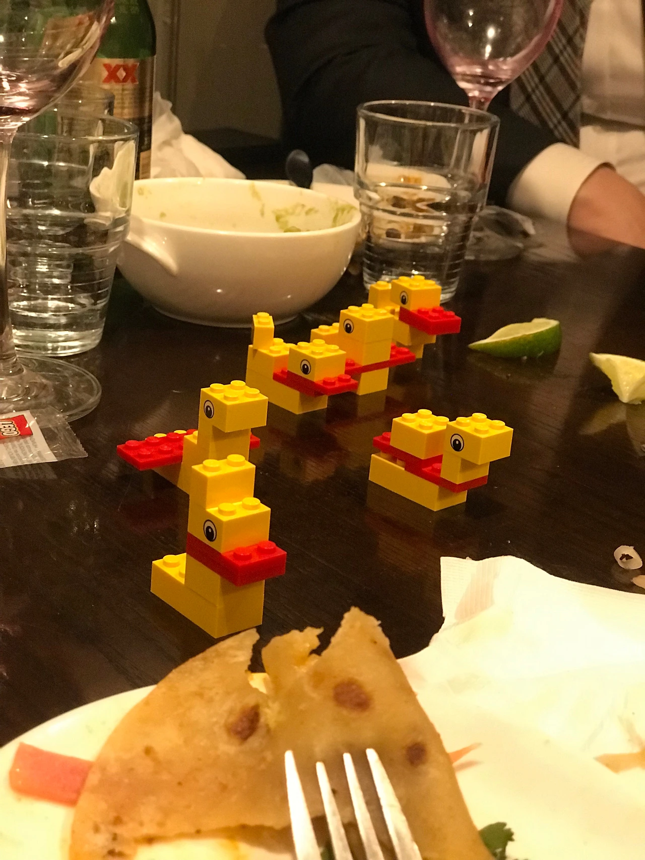 모임에서 나누어 준 6개의 레고 오리 블럭 세트. 모든 오리의 형태가 서로 다르다.