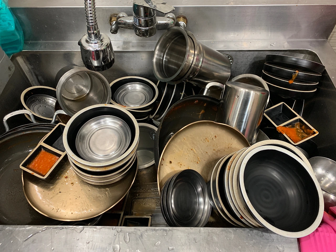 설거지할 기본 그릇의 수가 일식보다 훨씬 많다.