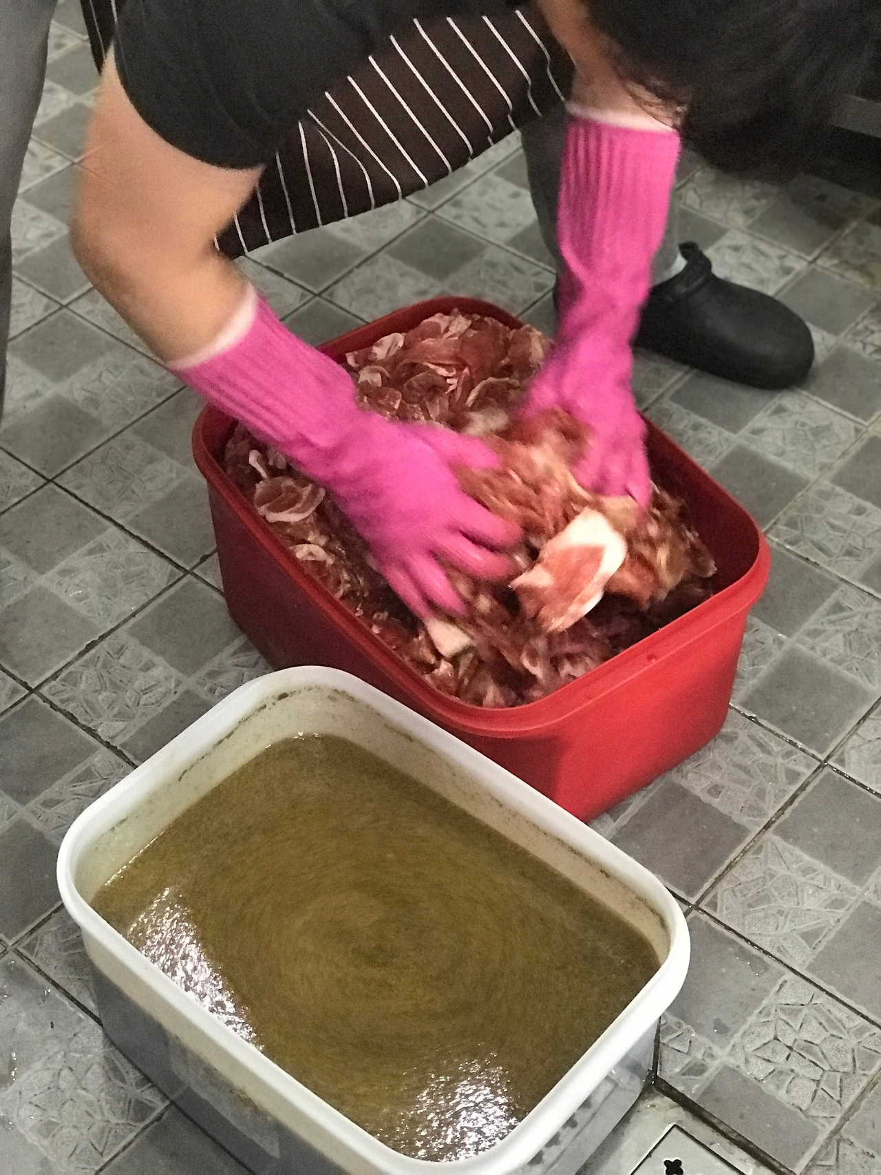양념에는 수십여 가지의 재료가 들어가는데 이중 일부는 곱게 갈아 넣는다.