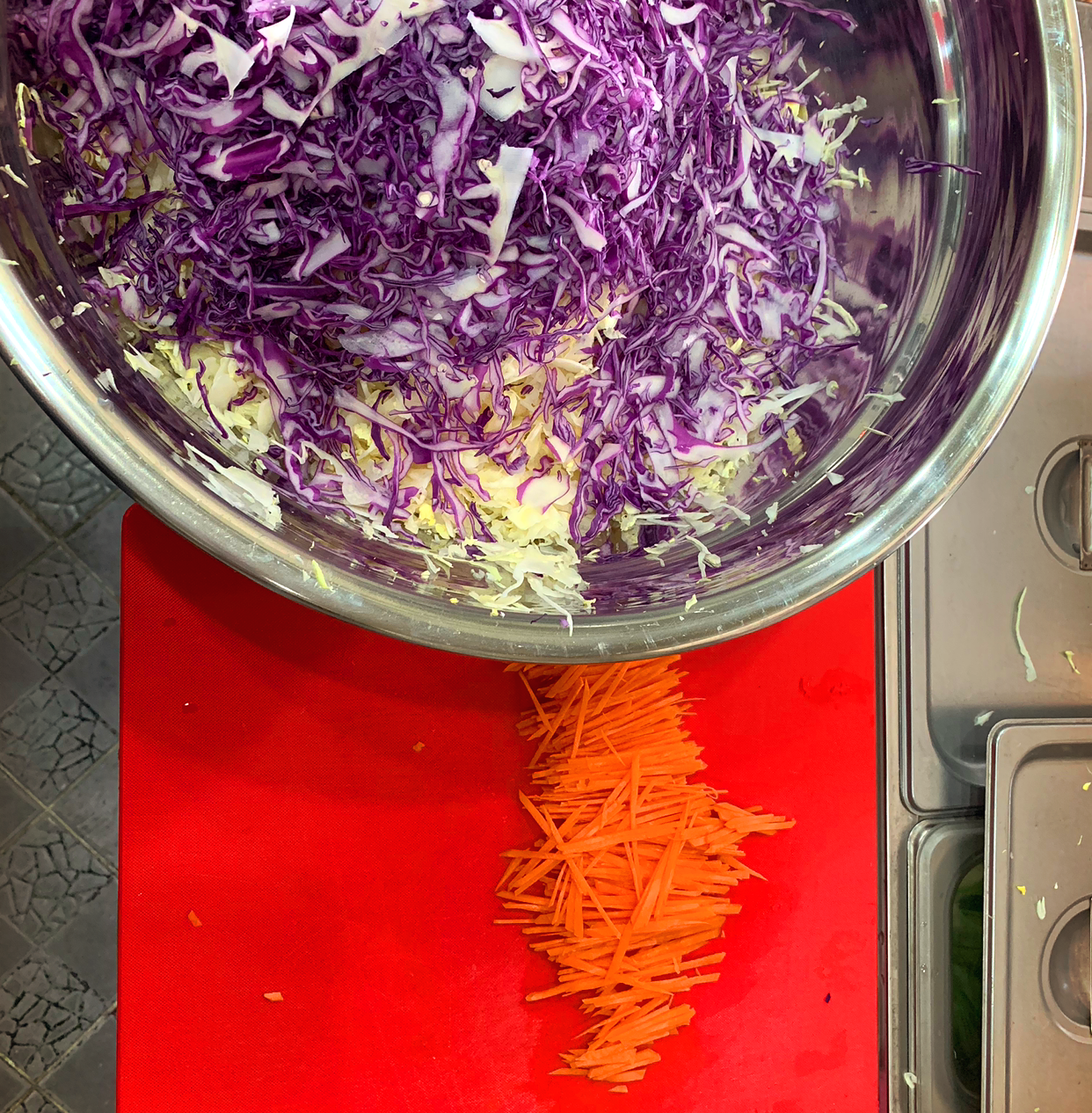 수분이 조금씩 사라지고 기름으로 변화하면서 기름을 활용한 팬 워크를 통한 시어링과 시즈닝 흡수, 익힘 마무리 관련 컨트롤을 배웠다.
