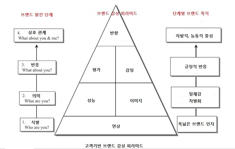1. 고객 기반 브랜드 자산, 2. 브랜드 감성 피라미드, 3. 브랜드 반향 네트워크.
