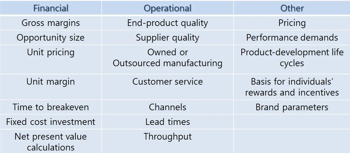 ‘이익 공식’과 ‘사업 모델’이라는 두 용어가 서로 비슷하다고 생각하는 경우가 종종 있는데, 이는 틀린 생각이다. 이익 창출을 어떻게 하느냐는 사업모델의 일부일 뿐이다. 맨 처음 CVP 제공에 필요한 가격을 책정한 뒤 다시 변동비와 매출 총이익(gross margin)을 계산하는 방법이 가장 효과적이라는 사실을 찾아냈다. 이 방법을 통해 원하는 수준의 이윤을 얻기 위해 어떤 수준의 규모와 자원 속도가 필요한지 결정할 수 있다.