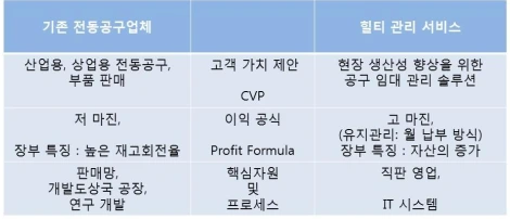 힐티는 수익을 높이기 위해 상품이 아닌 서비스에 집중, 시장에 일대 혁신을 몰고 왔다. 부품의 분실, 파손, 수리, 보관에 전혀 신경 쓸 필요가 없는 서비스. CVP의 근본적 변화로 사업모델 전부문의 변화가 눈에 띤다.