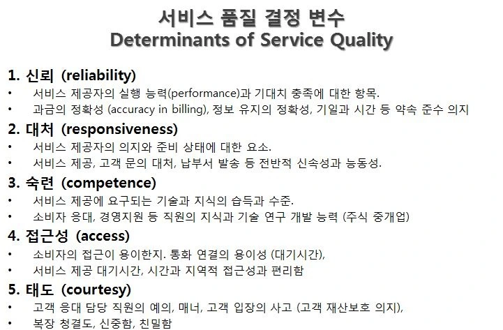 * 상품 품질보다 서비스 품질에 대한 평가가 고객에게 더 어렵다.