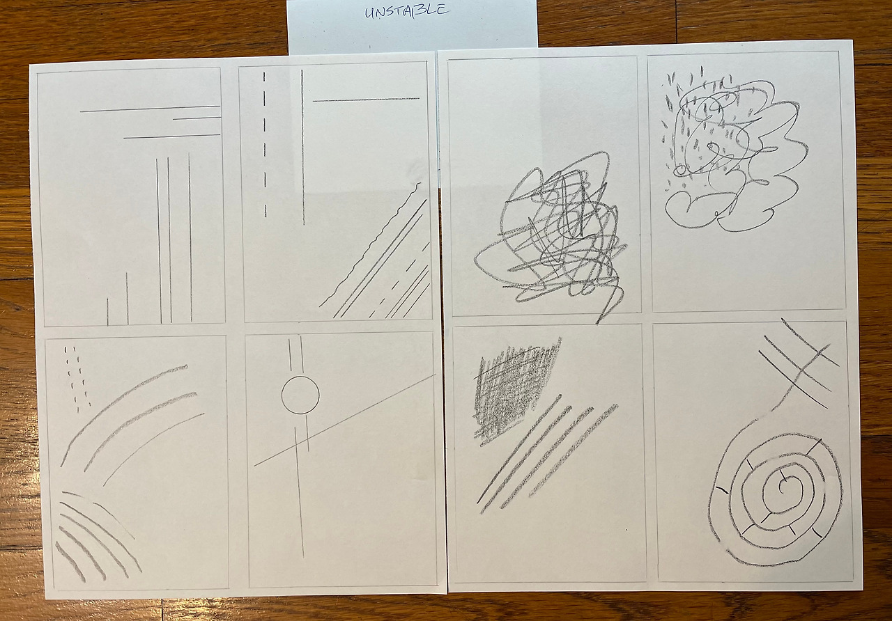 이제 3주가 지났는데, 지금까지는 다양한 모양의 선을 공부했다. 선의 모양이나 배열에 따라 작품은 여러 가지 감정과 메시지를 전달한다.