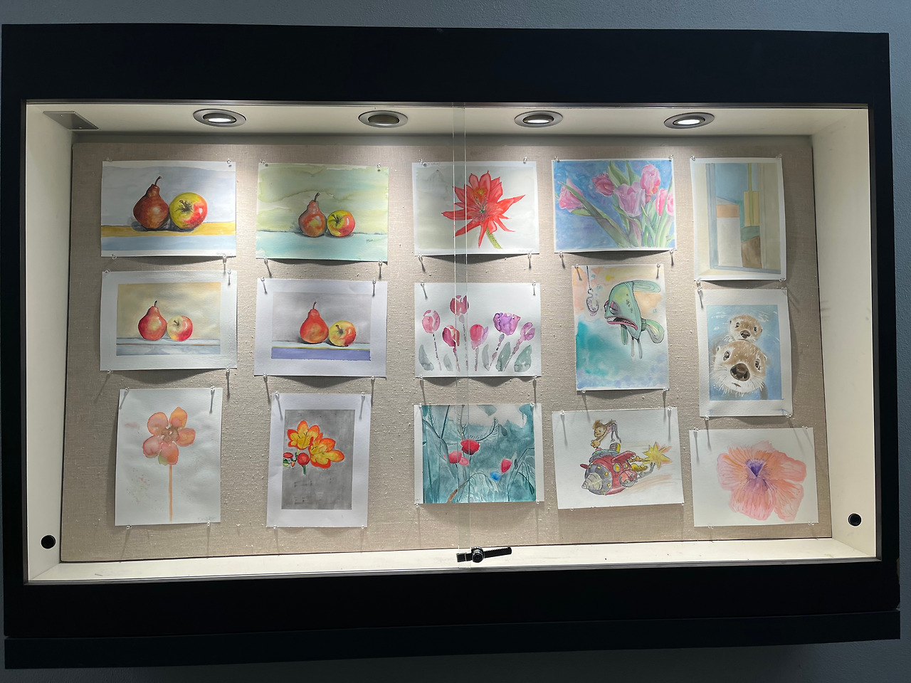 재미있는 것은 이제 겨우 2달 수업을 듣긴 했지만 조금씩 각자의 개성이 보인다는 점이다. 화풍이라고 말하기는 뭣하지만 글씨체 같은 것이다. 각자 사용하는 물감의 색이나 색상이 다르고 붓질도 다르다.