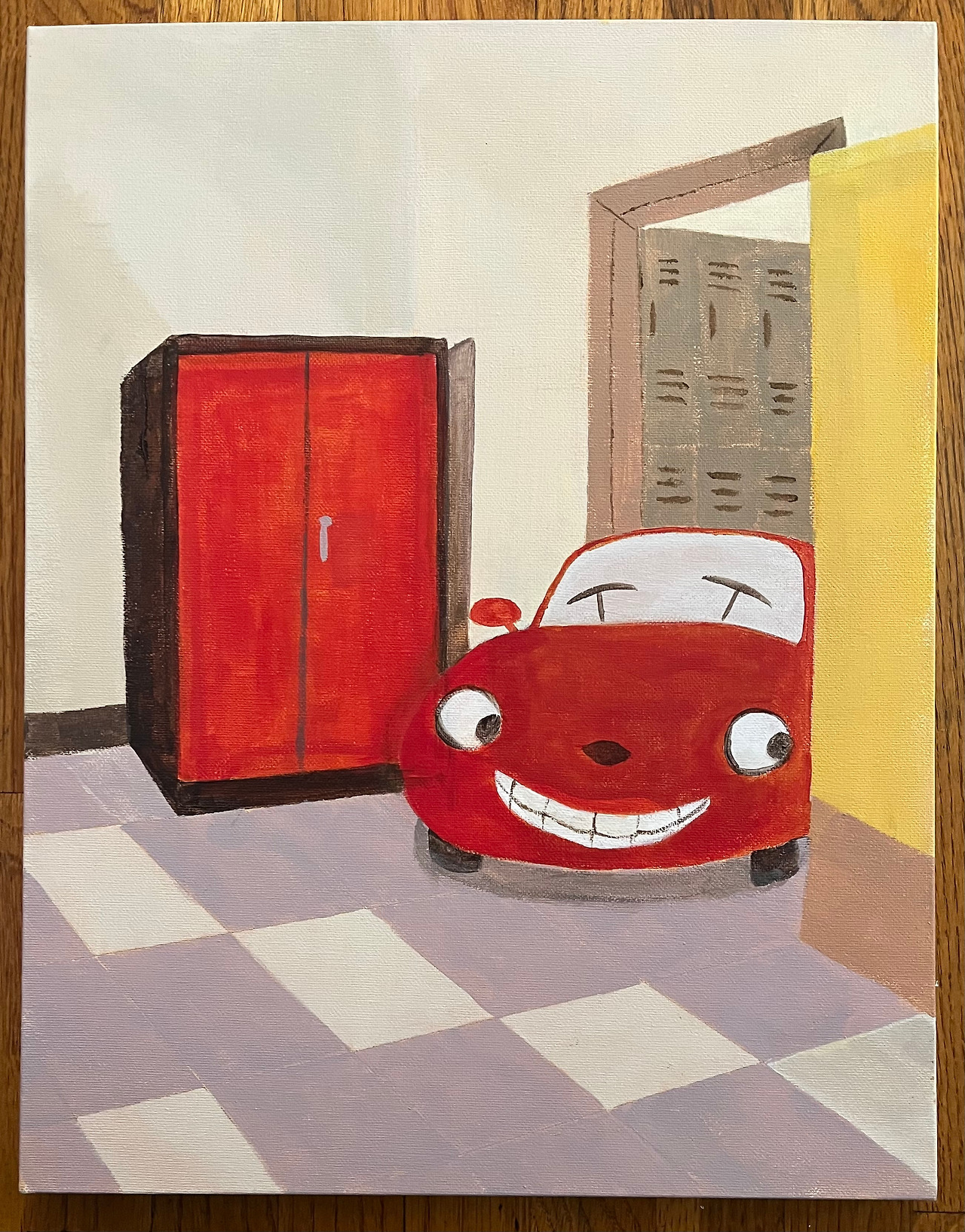 다음 주, 이번에게는 내가 뒤에 넣어 달라고 했더니, 운전기사가 (기사는 매번 다르다) 다소 난처한 표정을 짓더니 받아 주었다. 문제는 그다음에 발생했다. 며칠 후, 그림을 마저 그리려고 캔버스를 꺼내보니, 2cm 정도 찢어져 있었다. 그날 차 뒤편에서 무엇엔가 걸려 찢어졌던 모양이다. 뒷면에 테이프를 붙여 봉합을 하고 물감을 더 발라 수선을 했다. 다행히 검은색 물감을 칠한 부분이라 클래스의 학생들이나 교수도 눈치를 채지 못하고 넘어갔다.