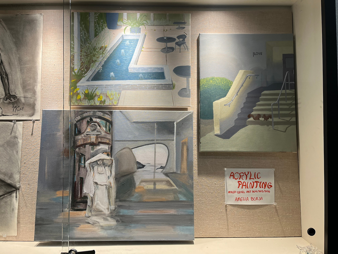 이번 과제물을 비평/토론한 후, 교수가 3명의 학생에게 복도에 전시를 할 테니 그림을 두고 가라고 했다. 내 이름은 불리지 않았다. 내 눈에도 교수가 선택한 그림이 내 것보다 좋아 보였다. 그럼에도 불구하고 순간 섭섭한 마음이 들었다. 사람의 마음이란.