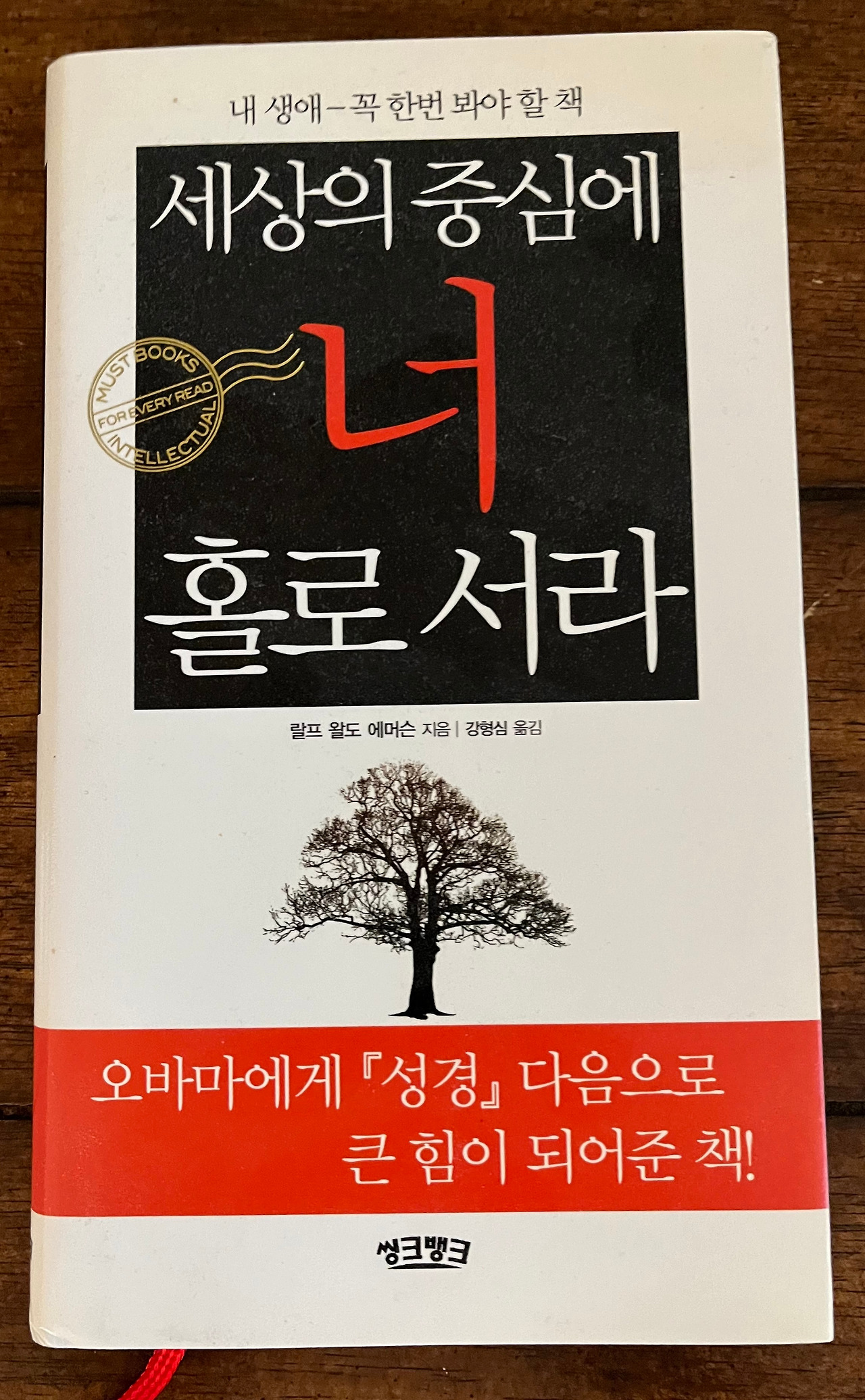 내가 이용하는 알라딘 중고책방도 그러하다. 책에 따라 미리 보기 기능이 있어 몇 페이지 펼쳐 볼 수는 있는 경우도 있지만, 그런 기능이 없는 것도 있다. 따라서 소문을 듣고, 또는 저자를 보고 책을 고르게 된다. 이 책 ‘세상의 중심에 너 홀로 서라’도 “오바마에게 ‘성경’ 다음으로 큰 힘이 되어준 책”이라는 표지에 적힌 글을 보고 산 책이다.