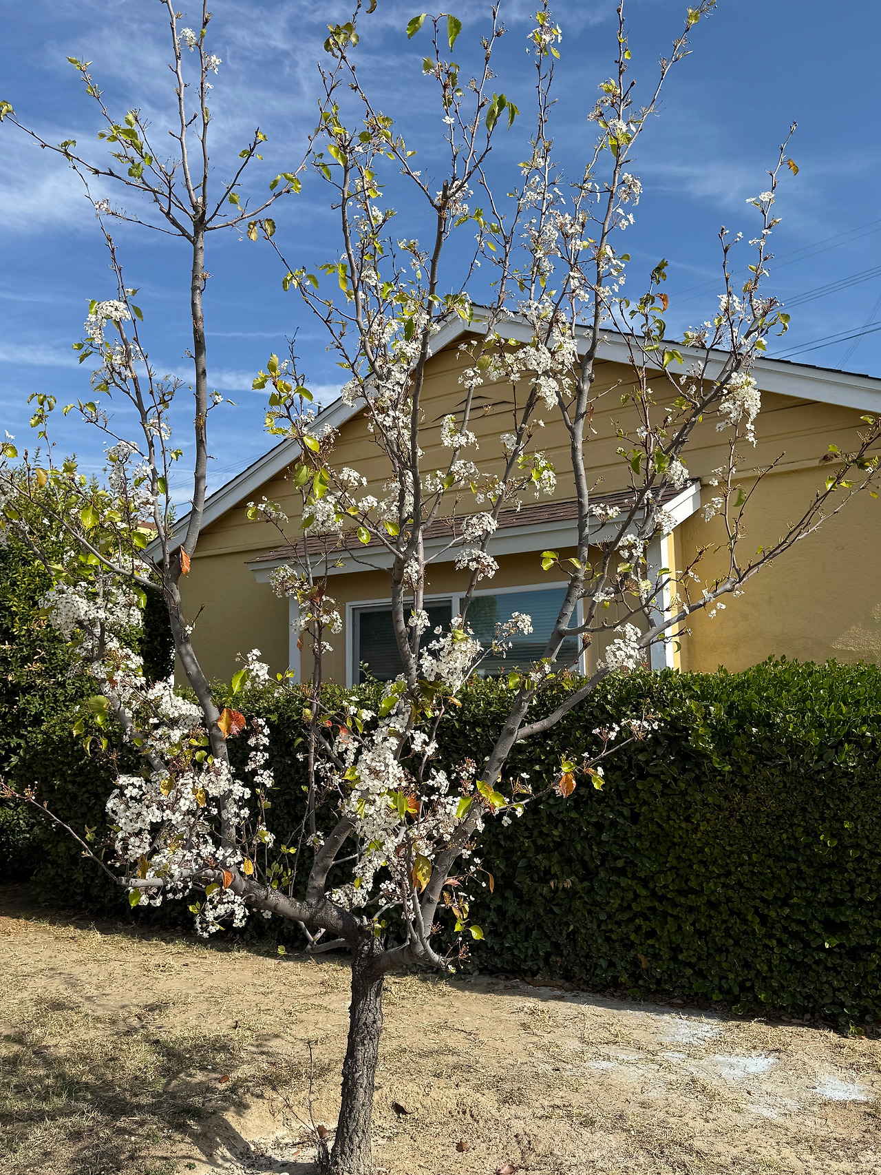 그 후, 앞마당 공사를 하며 나무가 서 있는 자리에 콘크리트를 깔게 되었다. 나무 구실도 제대로 못하는 놈 뽑아버릴까 했는데, 그것도 생물이라 차마 그럴 수 없었다. “네가 장미를 위해 소비한 시간이 너의 장미를 소중하게 만드는 거야.” (어린 왕자에 나오는 글이다.) 그동안 들인 공만큼 정도 들었다. 가드너에게 (나무 가격의 두 배가 넘는) $50을 주고 잔디밭 위로 옮겨 심었다.