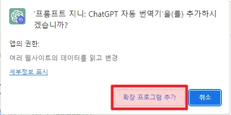 (3) 추가 팝업에서 '확장 프로그램 추가' 버튼을 눌러줍니다.