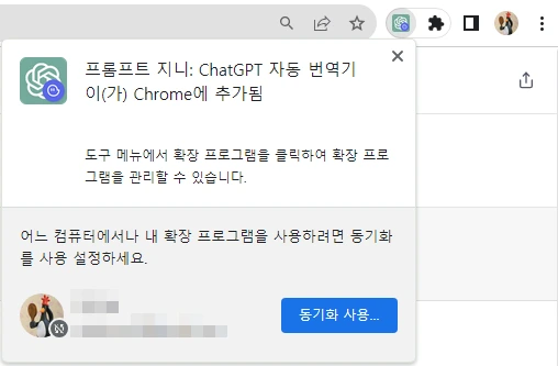 ✔︎ 쉽고 빠른 번역을 위한 확장 프로그램 다운로드: 프롬프트 지니
