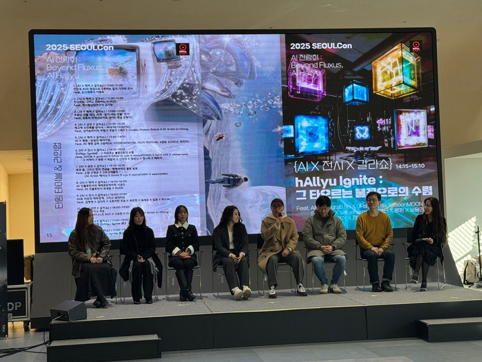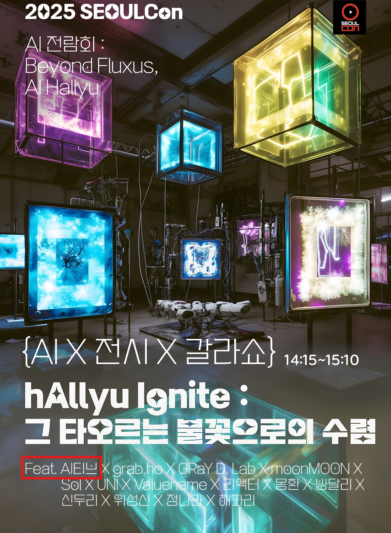 그렇게 나는 바빠지고 있었다. 그런데 연말에는 서울콘 AI 전람회에 출품을 신청해놓은 상태였다. 엎친데 덮진 격이다. 준비 기간은 촉박했고, 새로운 작품을 만들 시간적 여유는 충분치 않았다. 작품 기획 시간을 줄이기 위해 과거 진행했던 어떤 작품과 같은 주제로 새로운 영상 1편을 만들고 디지털 페인팅 1점, 그리고 그것을 영상화한 작품까지 총 3편을 출품했다. 그런데도 운 좋게도 아티스트 토크에 참여할 기회를 얻었다. 발표 시간은 짧았지만, 무대에서 내려온 뒤 몇 사람과 명함을 나누고 미래의 기회가 될 것같은 대화를 이어갔다. 나는 그 자리에 단순히 작품을 전시하러 간 것이 아니었다. 하루 종일 프로그램을 들으며 다른 아티스트들의 이야기를 듣고, 행사 종료 후에는 정리까지 함께했다. 바쁜 와중에 내가 이렇게까지 많은 시간과 노력을 아끼지 않은 이유는 이 생태계 안에서 얼굴을 익히고, 관계를 쌓는 과정 자체가 중요한 일이라고 생각하기 때문이다. 향후 교육 프로그램을 함께 진행할 새로운 강사진을 자연스럽게 만날 수 있는 기회도, 바로 이런 자리에서 형성된다.