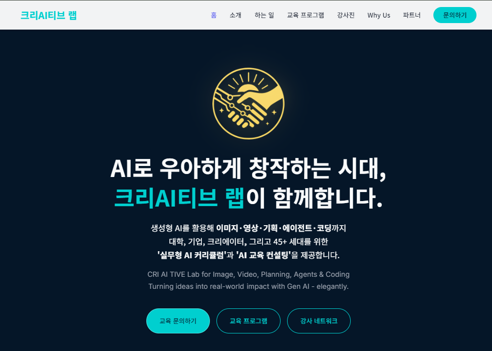 그 변화의 시작은 교육이었다. 모 대학 건축학과에서 AI 특강을 진행했고, 곧이어 졸업생과 재학생을 대상으로 한 20시간짜리 AI 교육 프로그램을 맡게 되었다. 처음에는 강사로 참여하는 일이라 생각하고 동료 강사들을 모집하는데 집중했다. 그런데 진행을 하다보니 바로 깨닫게 되었다. 실제로는 그 교육 프로그램을 설계하고 공급하는 기업의 대표 역할을 맡게 된 것이다. 나는 더 이상 혼자 강의만 하는 사람이 아니라, 교육의 목적에 맞는 커리큘럼을 만들고, 강사 네트워크를 구성하며, 각 과정에 적합한 사람을 배치하는 역할을 하고 있었다.