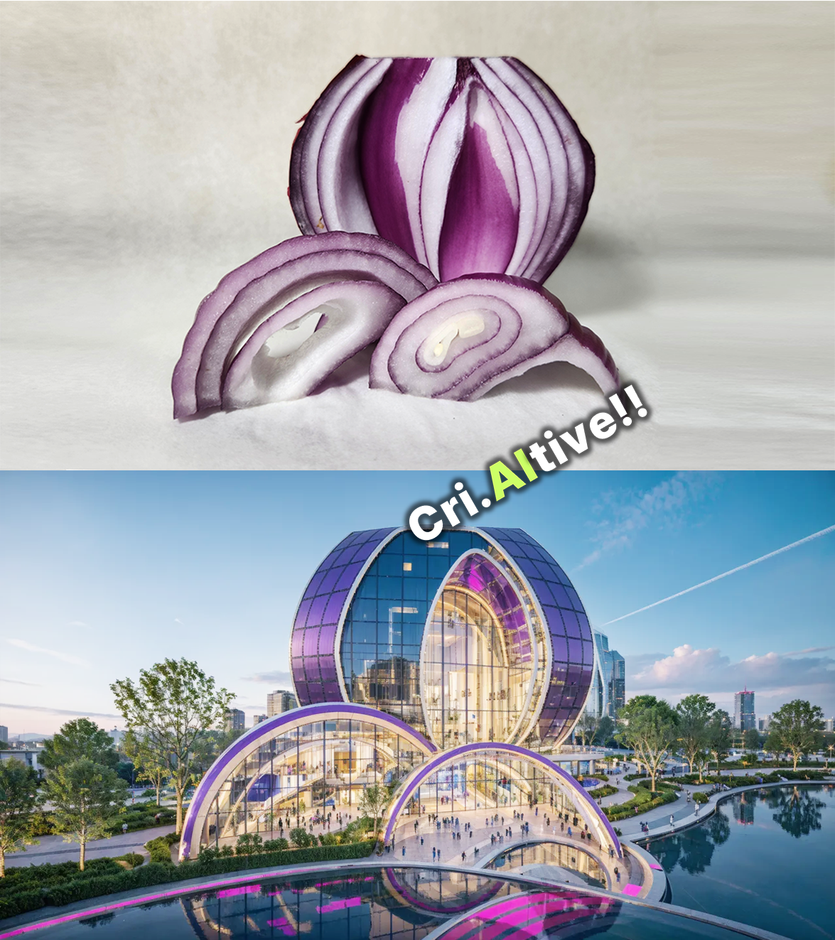 절단한 양파를 건물 전면 디자인에 활용이러한 실험은 작은 시작일 뿐입니다. 그리고 이미 앞서가는 선구자들이 존재하기 때문에 사실 좀 두렵습니다. 그렇지만 이 변혁기에 AI를 창의적으로 활용하는 교육이라는 흐름에 동참할 수 있음에 큰 의미를 느낍니다. 이 물줄기가 점점 더 거세져서, 더 큰 흐름으로 이어질 것을 믿습니다. 저는 단순히 멋진 결과물을 만드는 도구 활용법을 넘어, 의도와 의미를 갖춘 창의적 결과물을 생성하는 방법을 터득하고 이를 교육하는 사람이 되고자 결심했습니다. 이 글을 읽는 여러분이 바로 그 여정의 증인이 될 것이라 생각합니다.