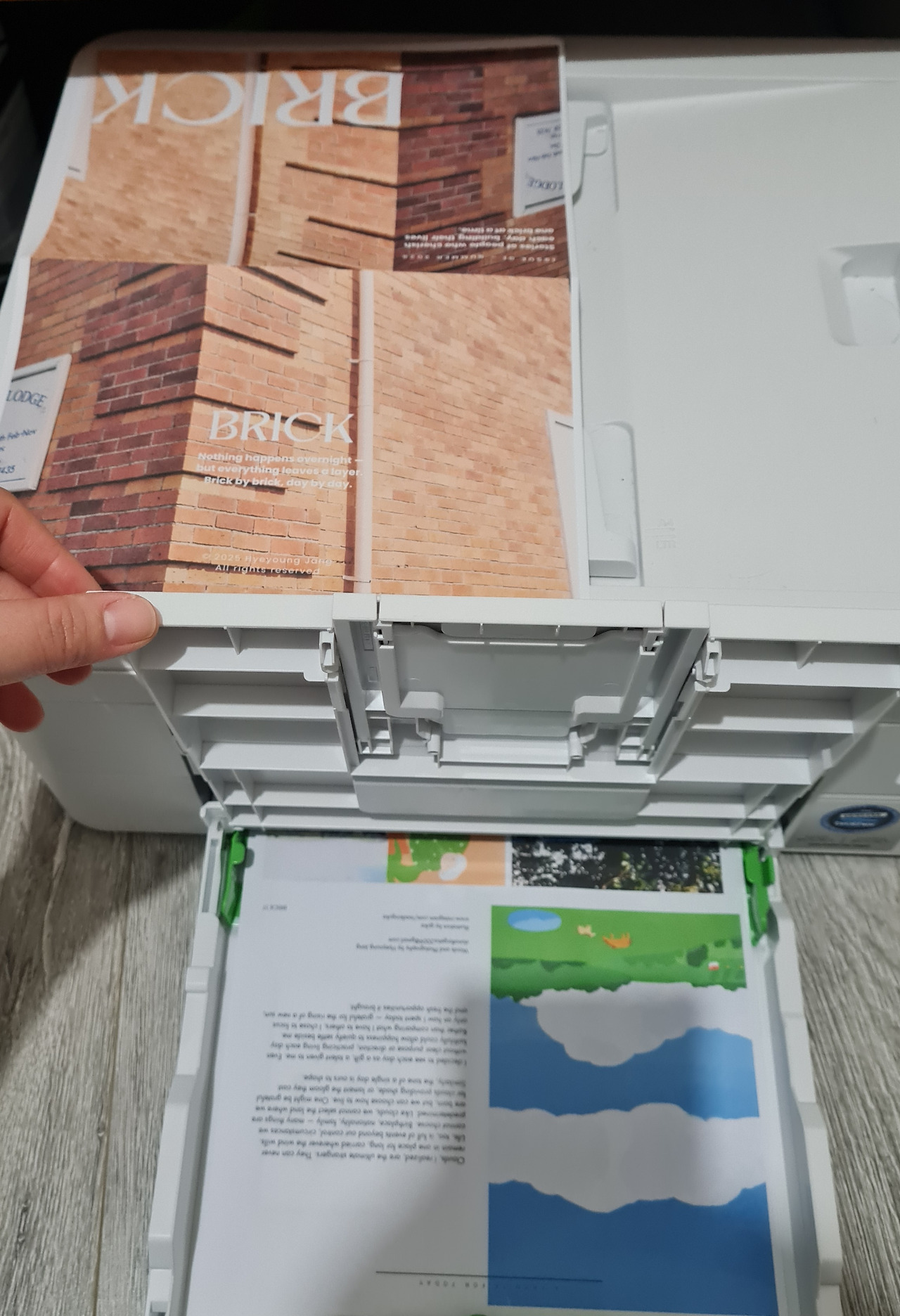이렇게 마켓에서는 창작물에 대한 애정과 응원을 느낄 수 있었다. 매거진을 구입하며 다음 매거진은 언제 나오냐고 물어보는 사람, 그 자리에서 인스타그램 계정을 묻고 팔로우하는 사람, 그리고 아무 말 없이 놀라는 표정, 미소 짓는 표정, 경청하는 표정만으로도 많은 에너지를 얻었다. 기획부터 인터뷰, 사진, 글쓰기, 디자인, 프린트까지 전 작업을 셀프로 진행하는 건 정말 새로운 경험이었다. 막상 인쇄되고 보니 폰트 크기를 더 크게 할걸, 좀 더 두꺼운 종이에 인쇄할걸, 한국어도 같이 수록할걸 등등 보완할 점들이 많이 보이지만 앞으로 해보고 싶은 것들이 떠올라서 좋은 시작이라는 생각이 든다. 벌써부터 브릭 매거진의 표지들을 차곡차곡 쌓아서 벽처럼 만들어보고 싶다는 상상을 한다. 내가 작업에 쓸 수 있는 시간은 아이를 재우고 나서, 집안일을 하고 나서 겨우 남는 자투리 시간에 불과하지만 이 조각들이 쌓이면 어떻게 될까 기대가 된다. 너무 조금이라고 묻어두기보다는 부족하다고 덮어두기보다는 용기 있게 꺼내보이고 상처받고 계속 시도해 보는 편을 택하고 싶다. 이러한 과정 또한 누군가에게는 시작하는 용기를 주는 디딤돌이 될 수 있으니까.