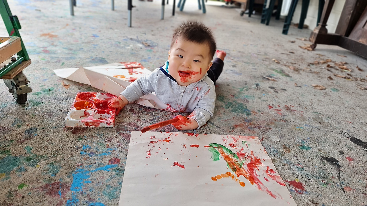 로이가 처음 붓을 만지며 논 날. 물감을 먹기 바빴지만 스스로 붓을 쥐고 움직이는 걸 재밌어했다.