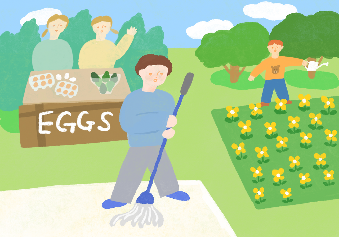 뉴질랜드에서는 아이에게 화장실 청소, 설거지 등 작은 일이더라도 역할을 주고 공동생활에 기여를 할 수 있도록 가르치는 경우를 쉽게 본다. 아이를 위한 노트북, 자전거 등을 살 때에도 아주 일부더라도 아이가 돈을 모아서 보태도록 한다. 이렇게만 보면 아이들이 대견한 것 같지만, 실상을 들여다보면 부모의 희생과 결단이 있어야 한다. 닭을 키우는데 드는 사료값만 해도 계란 값은 족히 들고, 자주 청소하지 않으면 냄새가 나기 때문에 뒷감당은 오롯이 부모의 몫이다. 아이에게 집안일을 맡길 때에도 완성도를 기대하기는 어렵다. 한 번은 친구 줄리네 집을 방문했는데, 줄리는 “화장실은 딸이 청소해서 깨끗하지 않을지도 몰라.”라고 말했다. 8살인 매시가 화장실 청소 담당이라는 것에도 놀랐지만, 자신의 성에 차지 않아도 아이에게 맡길 줄 아는 줄리도 놀라웠다. 어른의 시선으로 볼 때 부족한 부분들이 많이 보여도 기회를 줘야 한다는 것. 아주 어렸을 때부터 꾸준히 기회를 받으며 자라난 아이들은 자립심도 높고 자신에 대한 자긍심도 높아 보였다.