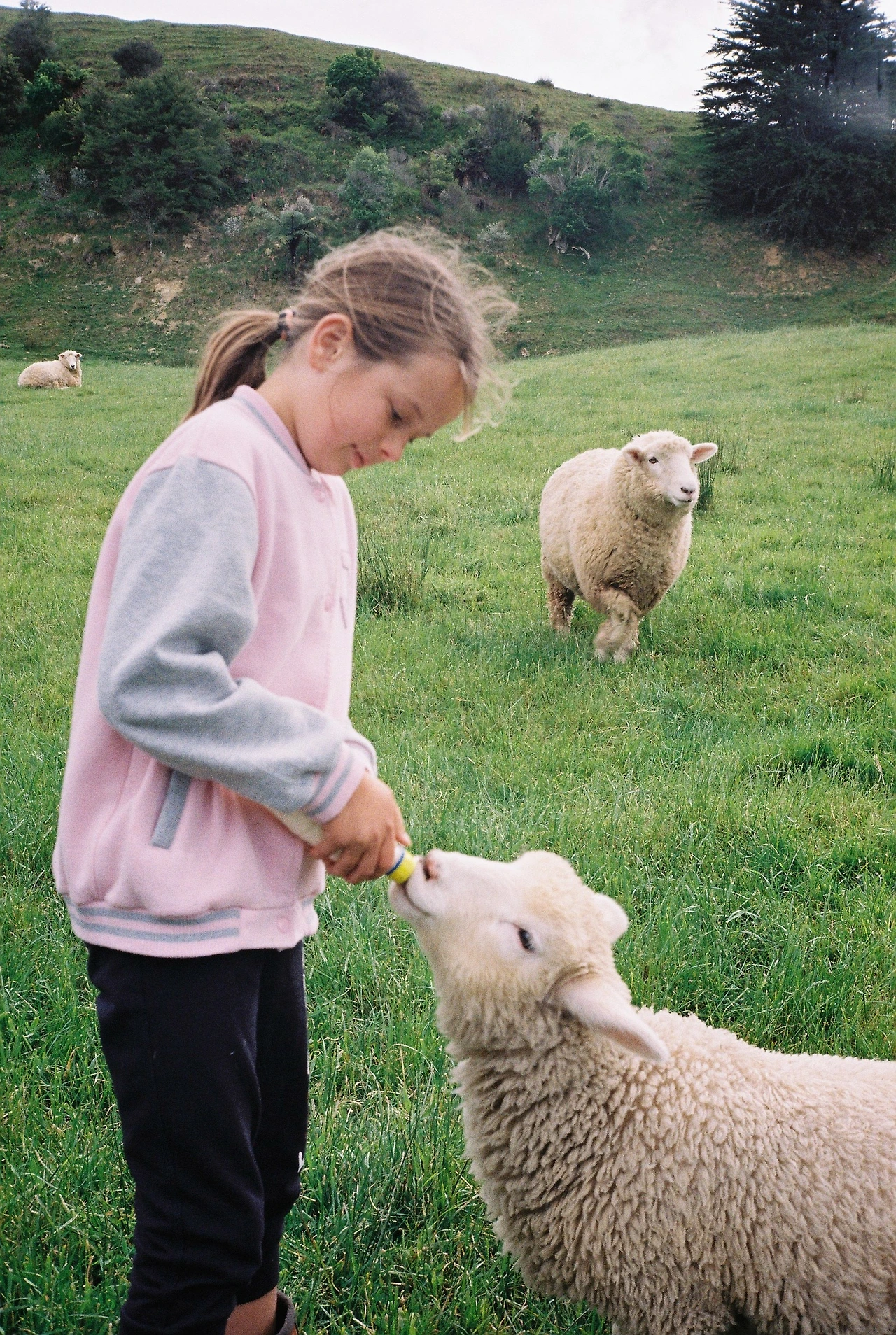 자신이 키우는 양에게 우유를 주고 있는 아나. 아이는 새끼 양(Pet sheep)을 키우기로 한 자신의 선택에 따라 최선을 다해 돌봐주고 함께 놀아준다.
