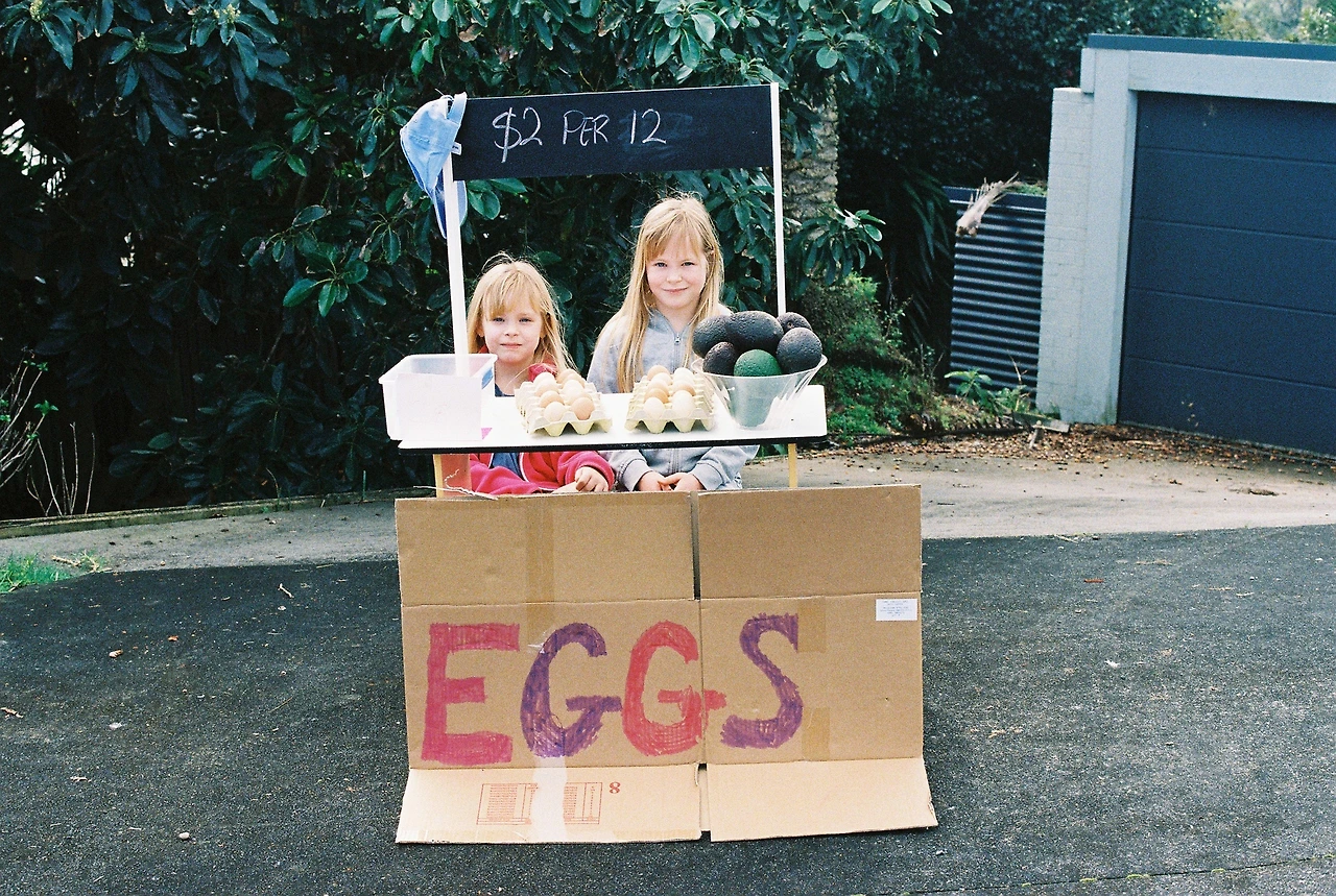 옆 집 쌍둥이네는 닭 10마리를 키우고 있다. 닭 한 마리 한 마리 모두 이름이 있는데, 내 눈에는 모두 비슷해 보였지만 깃털의 연하고 진한 빛깔이 다르다며 이름을 부르며 닭들을 소개했다. 처음 쌍둥이 자매를 만난 건 집 앞에 좌판을 펼쳐놓고 계란 한 판과 아보카도 한 바구니를 단돈 2불(약 1,600원)에 팔고 있는 걸 보고 단골이 되면서부터다. 시중가로 계란은 12불, 아보카도는 10불은 족히 내야 하는데, 2불이라니 횡재나 다름없었다. 뒤뜰에 닭들을 풀어놓고 프리 레인지(Free Range)로 키우기 때문에 매일 아침 정원 곳곳에 숨겨진 계란을 찾고 모으는 일이 쌍둥이 자매의 담당이었다. 이렇게 조금씩 용돈을 모아서 자매는 자신들이 원하는 물건을 살 때 보탠다고 했다.