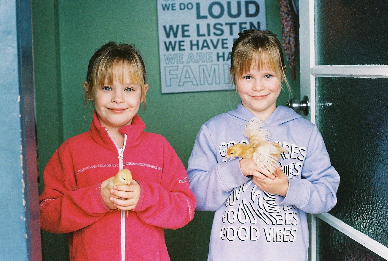10마리의 닭을 키우고 있는 쌍둥이 자매. 매일 아침 정원에 흩어진 계란을 찾는 것이 이들의 듀티다.