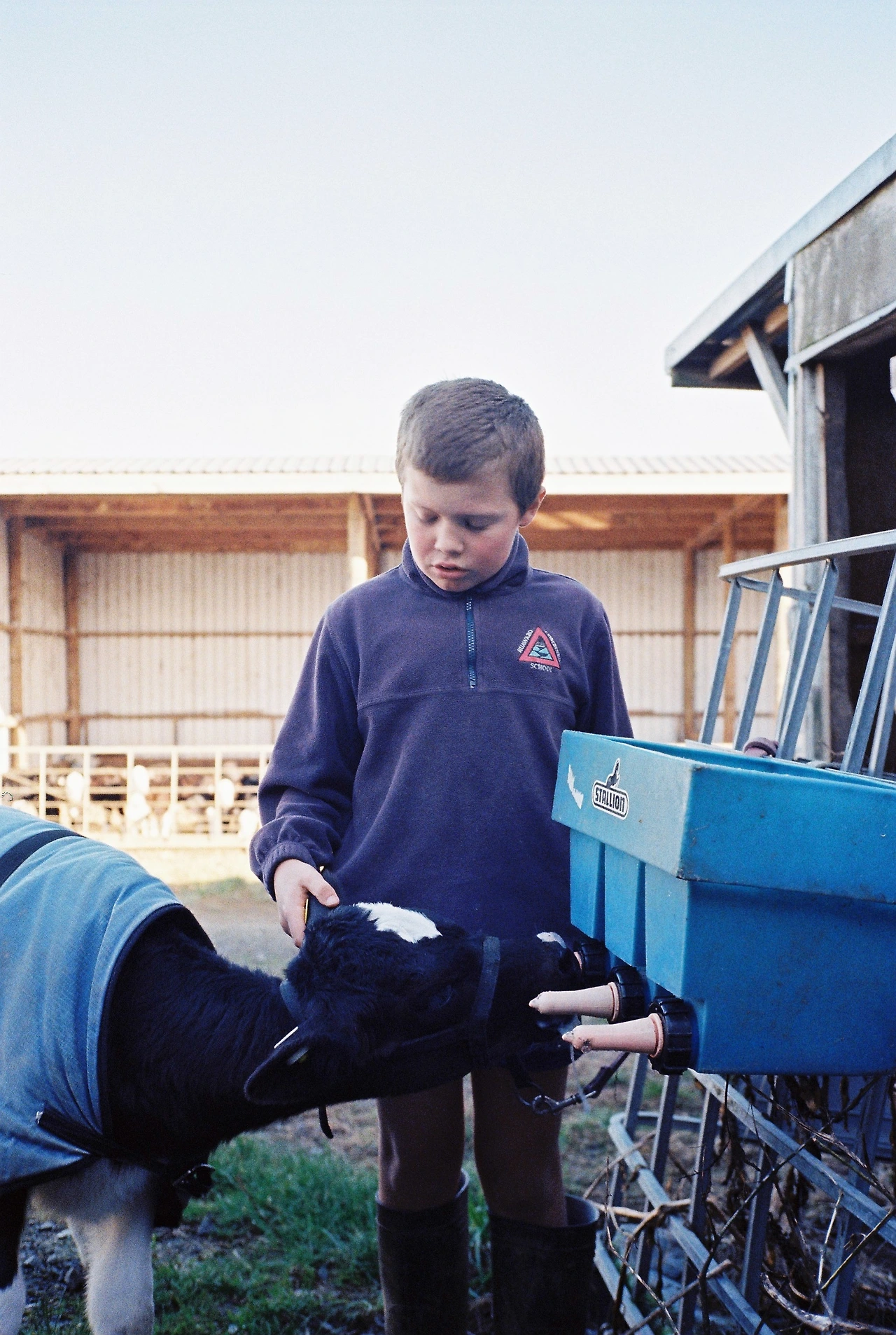 송아지에게 우유를 주는 8살 애샤. 농장에서 자라난 아이들은 한 마리부터 애착을 가지고 정성껏 키우는 연습을 한다.