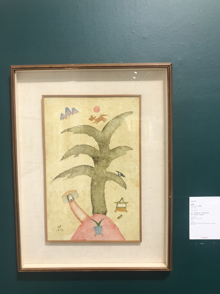 동화같이 순수하고 따뜻한 느낌의 그림이 계속 보고 싶었고, 작가에 대해서도 궁금해졌다. 하지만 내 예상과는 다르게 그는 약 30년 전부터 이 세상 사람이 아니었다. 그 시대의 화가가 이런 색을 사용하다니, 나는 깜짝 놀랐다. 아쉽게도 그의 작품을 볼 수 있은 전시회는 현재 없고, 양주의 장욱진미술관까지 가야한다. 만약 이 경매 전시장에 들르지 않았다면, 나는 장욱진이라는 화가를 모르고 살았을 지도 모른다. 이런 생각을 하니, 오늘의 장소와 타이밍과 그림과 나의 우연적 만남들이 신기하고 소중하게 느껴진다.