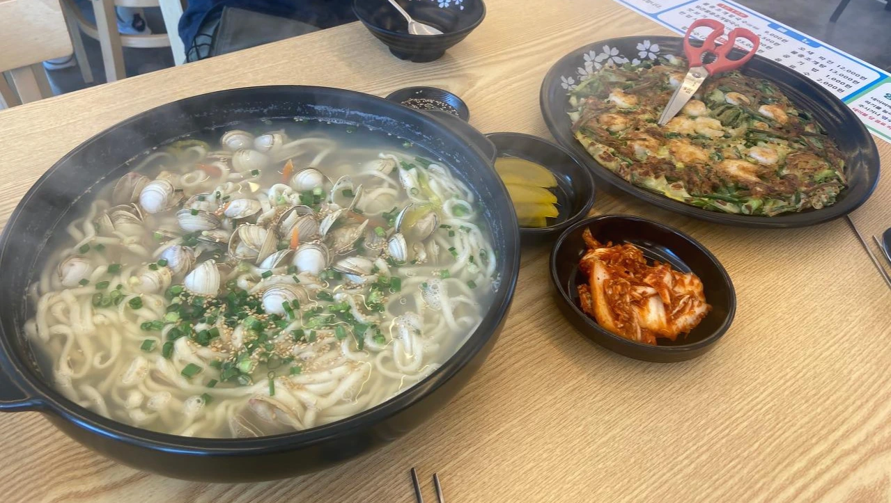 점심을 먹으러 이동했다. 점심은 근처 칼국수집, 물총칼국수였나 그랬다. 상호는 기억이 잘 안난다. 국물이 시원했다. 어릴 땐 몰랐다. '국물이 시원하다'는 것이 무슨 의미인지. (지금도 명확히 설명하진 못한다.) 국물이 '시원하다'는 표현은 누가 만들었는진 몰라도 아주 적절하다. 칼국수 국물이 매우 시원했다. 조개는 탱글탱글 식감이 재미있었다. 개인적으로 바지락보다 낫다. 김치는 좋아하는 겉절이 스타일. 파전은 해물이 듬뿍 들어간 바삭바삭한 느낌으로 게눈 감추듯 흡입했다.